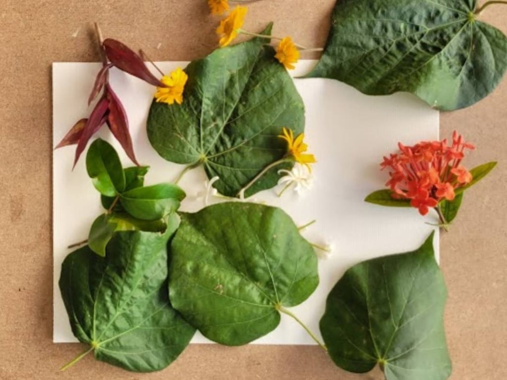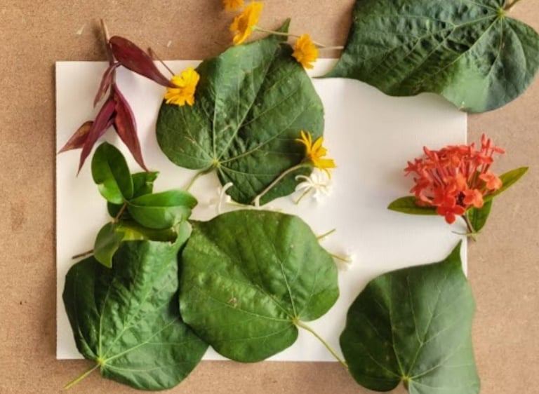 Foto da atividade com materiais naturais. Encontro julho de 2023. Tema: Impermanência.