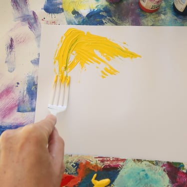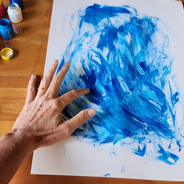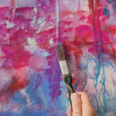 Eu conduzo pequenas propostas de pintura que ajudam você a romper a tela em branco e começar.